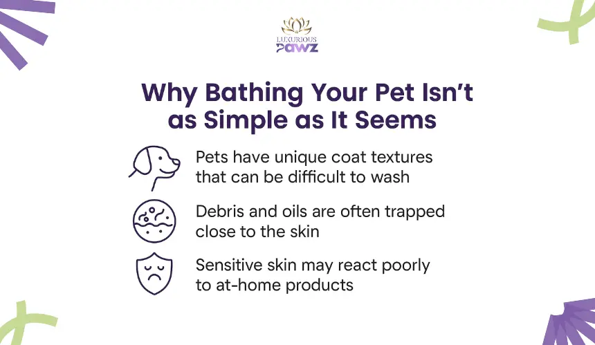 Understanding these factors helps explain why at-home baths sometimes fall short, especially for pets with more complex grooming requirements.