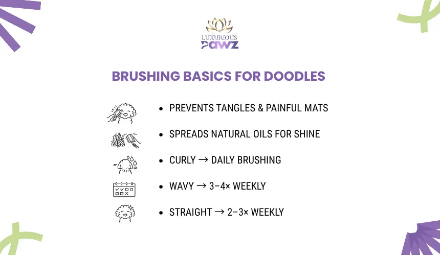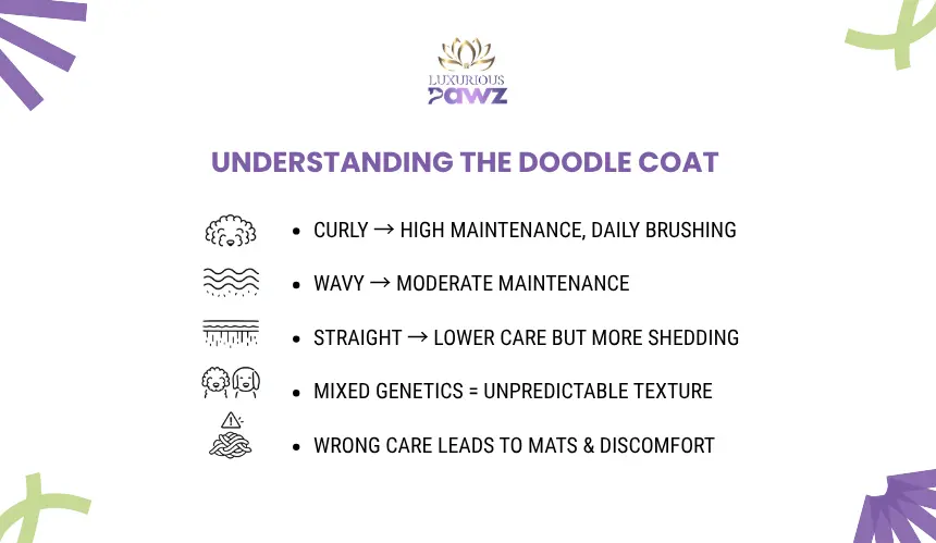 A clear understanding of your doodle’s coat type helps you prevent matting, choose the right grooming tools, and create a routine that keeps the coat healthy rather than overwhelming to manage.