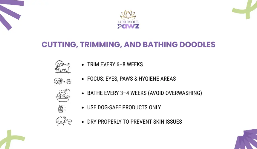 Paying attention to these details ensures your doodle remains comfortable and healthy. Routine trimming prevents mats from forming, reduces grooming time, and keeps the coat manageable, so your dog can stay happy and stylish without discomfort.