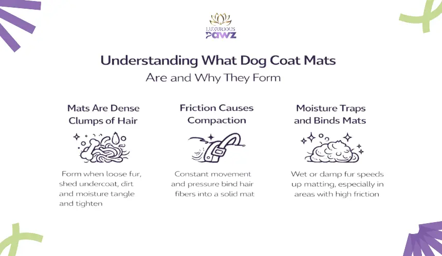 Before any safe removal method makes sense, it helps to understand what mats actually are at a structural level. Dog coat mats are not random clumps of hair.