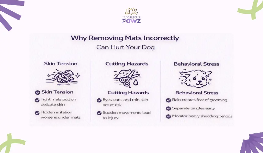 This guide explains how to approach mat removal safely, how to recognize when home care is appropriate, and how to protect your dog’s comfort throughout the process.