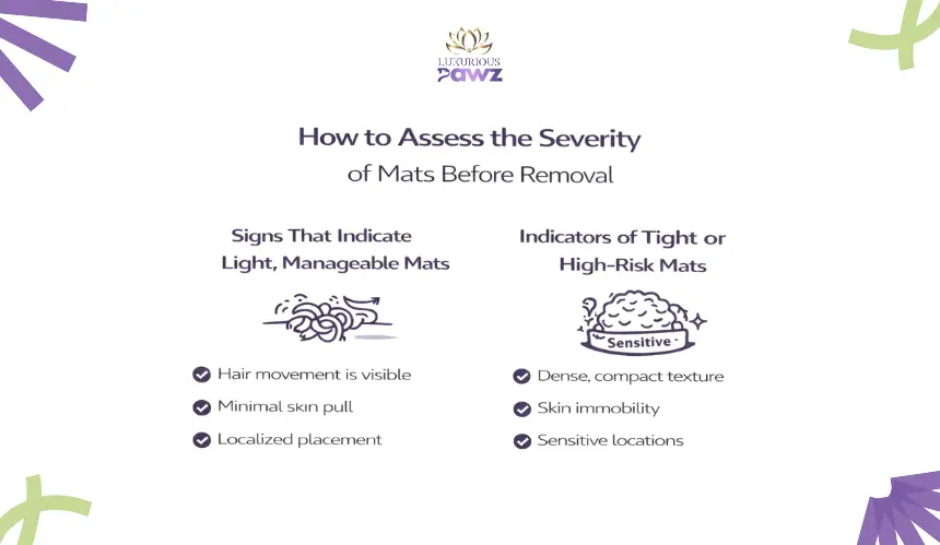 Before attempting any removal, it is essential to evaluate how tightly the mat is formed and how close it sits to the skin. This assessment determines whether gentle home care is appropriate or if removal could cause discomfort or injury. Severity is not about size alone. It is about density, mobility, and skin involvement.